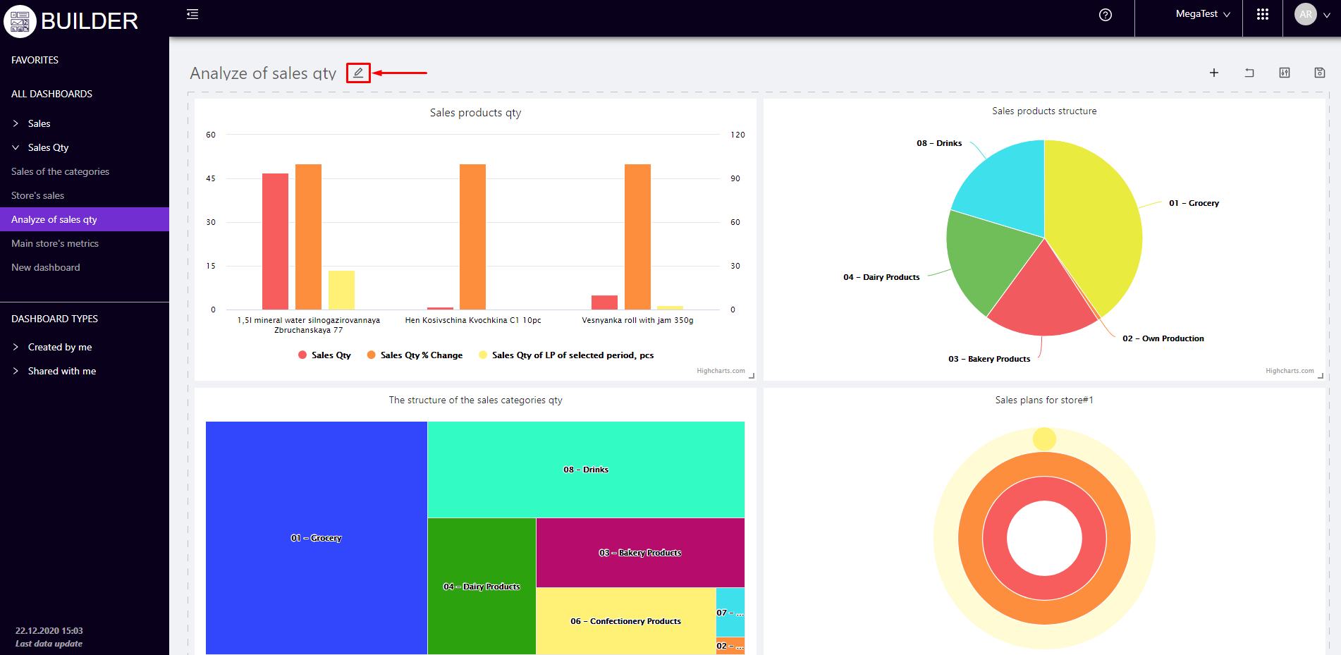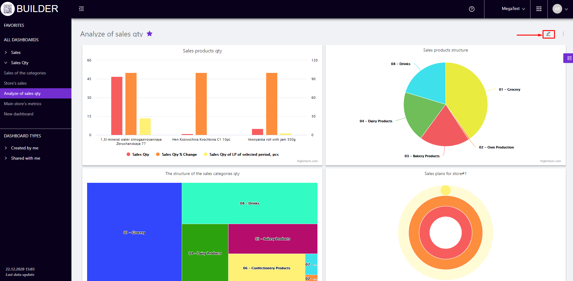To go to the page Editing a dashboard, you need to open the dashboard to view and press the button (in the upper right corner of the page).