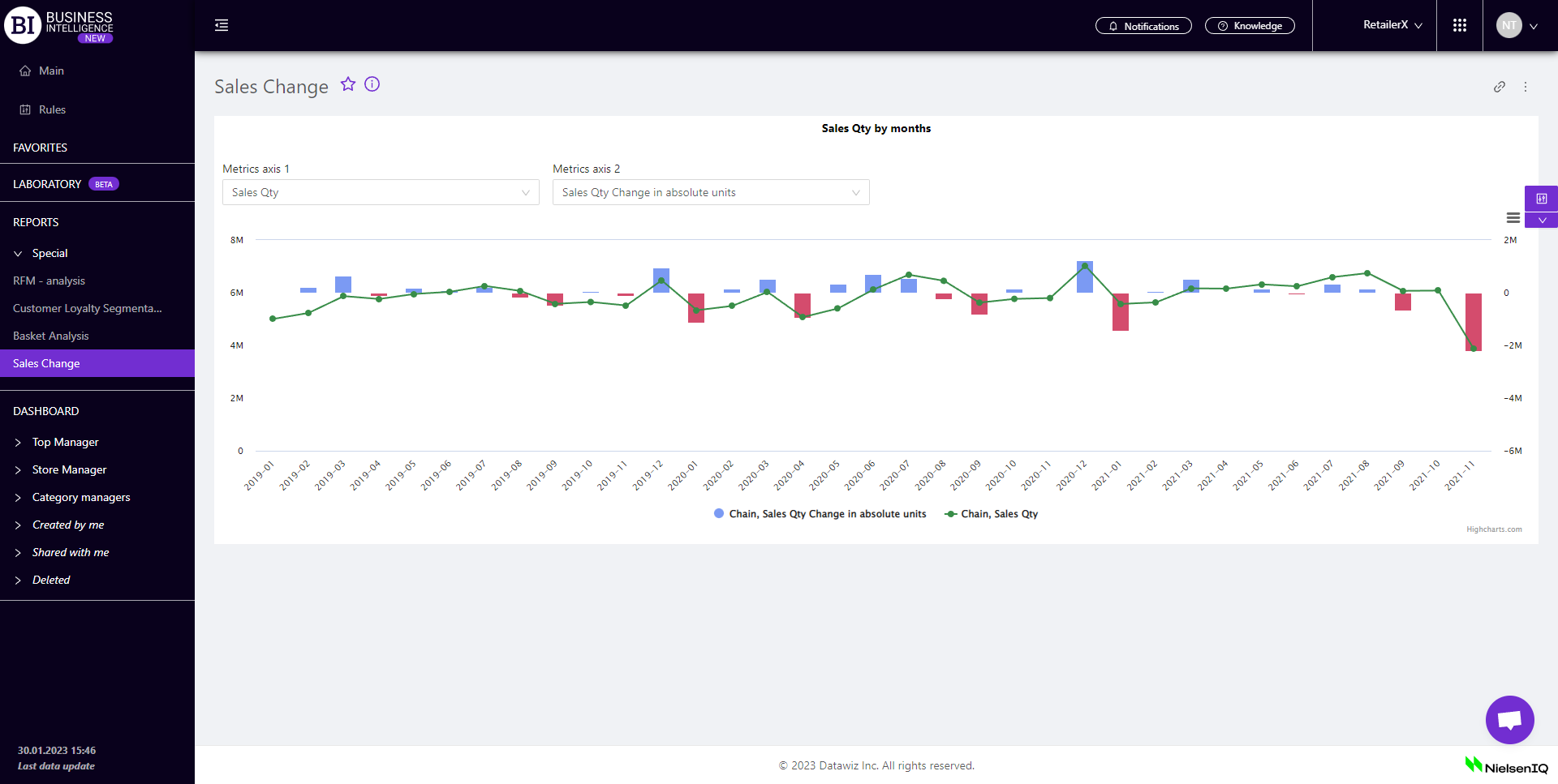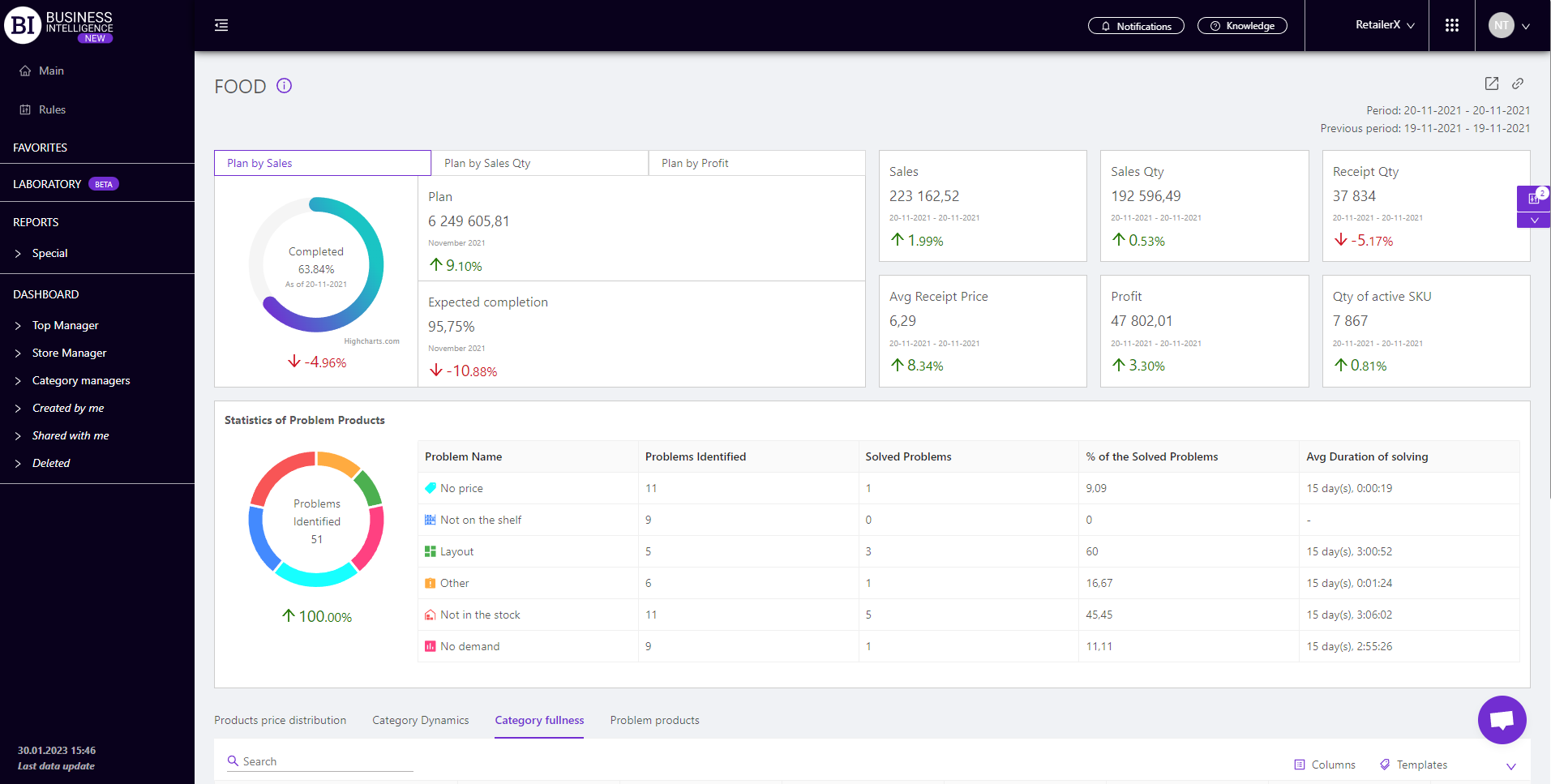 Brand salesStore cardProduct CardBasket AnalysisQuadrant analysisProducers analysisPlanogram EfficiencyLost SalesSales ChangeCategory managersSuppliers salesMarkers comparisonCategory CardProducts salesStores salesCategories salesStock MonitoringMainUnsaleable productsPrediction of OoS24-Hour AnalysisProducts movementEffectiveness of сashiersProducts for adjustmentPOS-terminal TrafficSales PlansPromotion AnalysisNew SKUEffectiveness of Loyalty ProgramPromo CardRFM - analysisStatistic of Loyalty ProgramCustomer Loyalty SegmentationLoyalty CardComparative DynamicsReceiptsSALES CHANGE