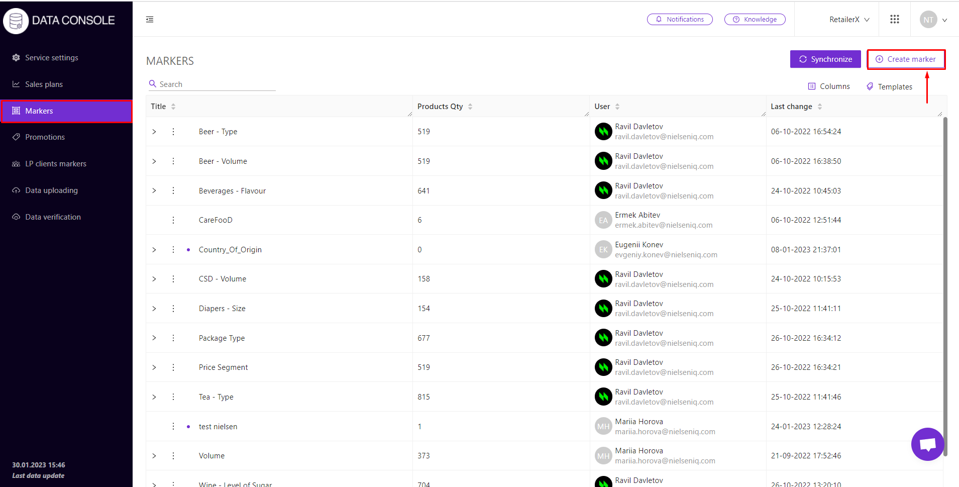 You can create and edit markers in the Data Console solution. You can find more detailed information on this in the DC Markers tutorial section.