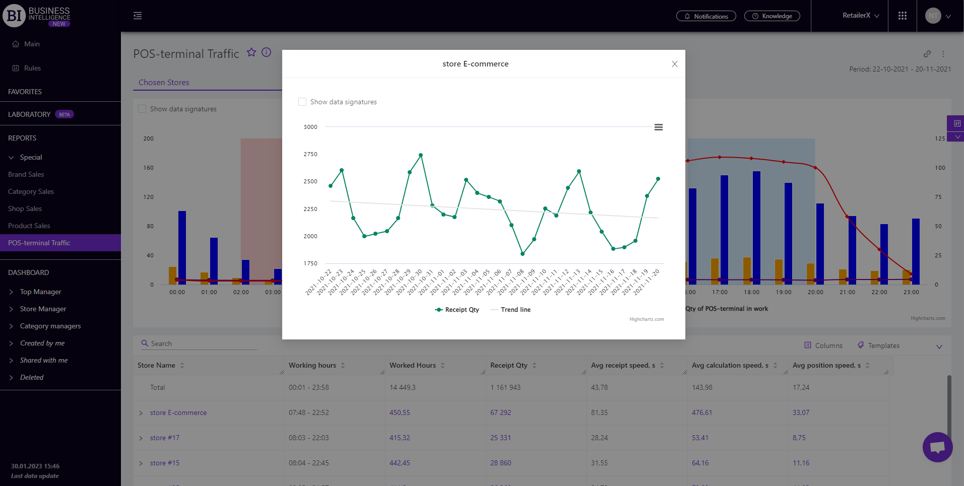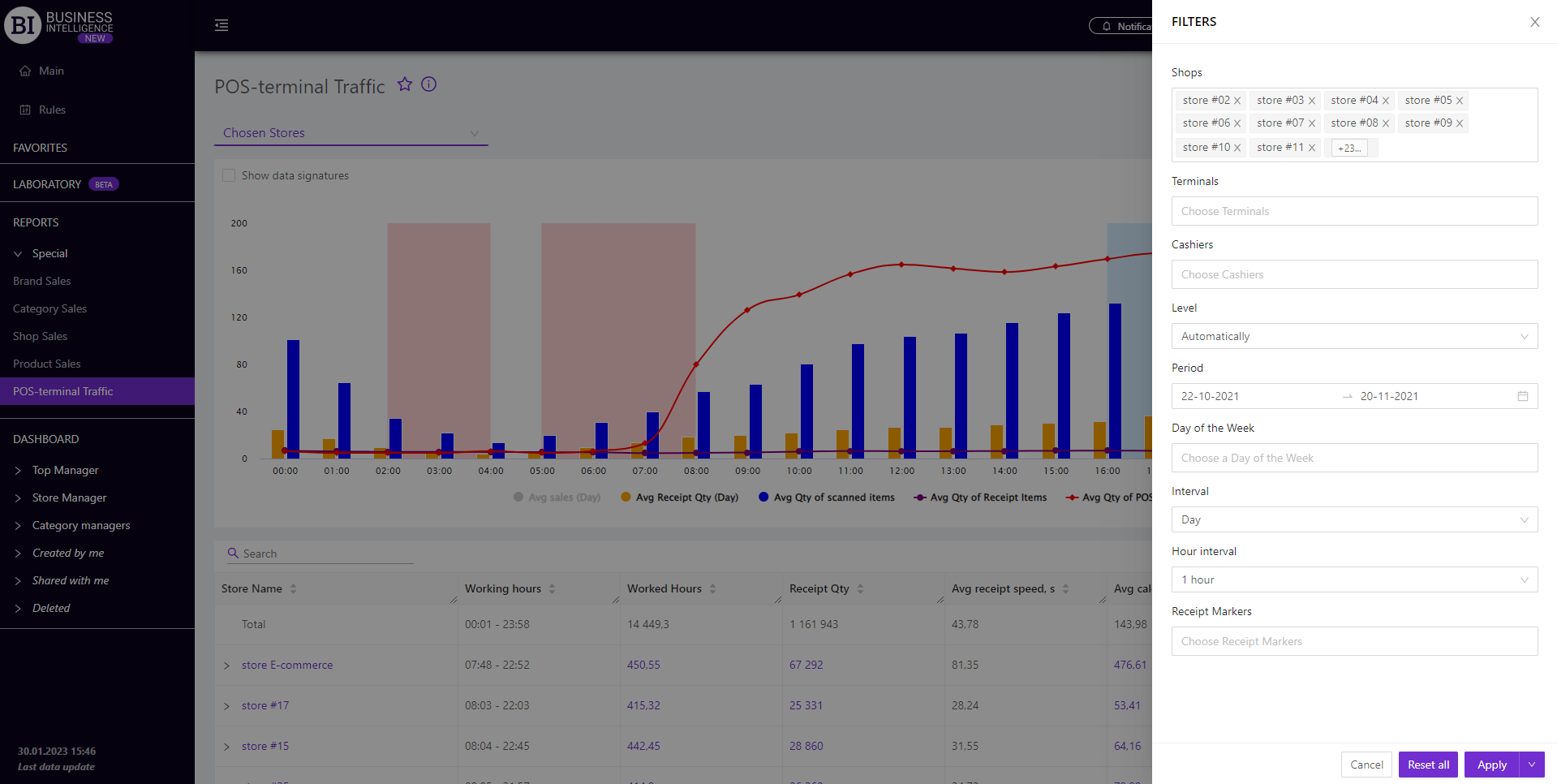 Brand salesStore cardProduct CardBasket AnalysisQuadrant analysisProducers analysisPlanogram EfficiencyLost SalesSales ChangeCategory managersSuppliers salesMarkers comparisonCategory CardProducts salesStores salesCategories salesStock MonitoringMainUnsaleable productsPrediction of OoS24-Hour AnalysisProducts movementEffectiveness of сashiersProducts for adjustmentPOS-terminal TrafficSales PlansPromotion AnalysisNew SKUEffectiveness of Loyalty ProgramPromo CardRFM - analysisStatistic of Loyalty ProgramCustomer Loyalty SegmentationLoyalty CardComparative DynamicsReceiptsPOS-TERMINAL TRAFFIC