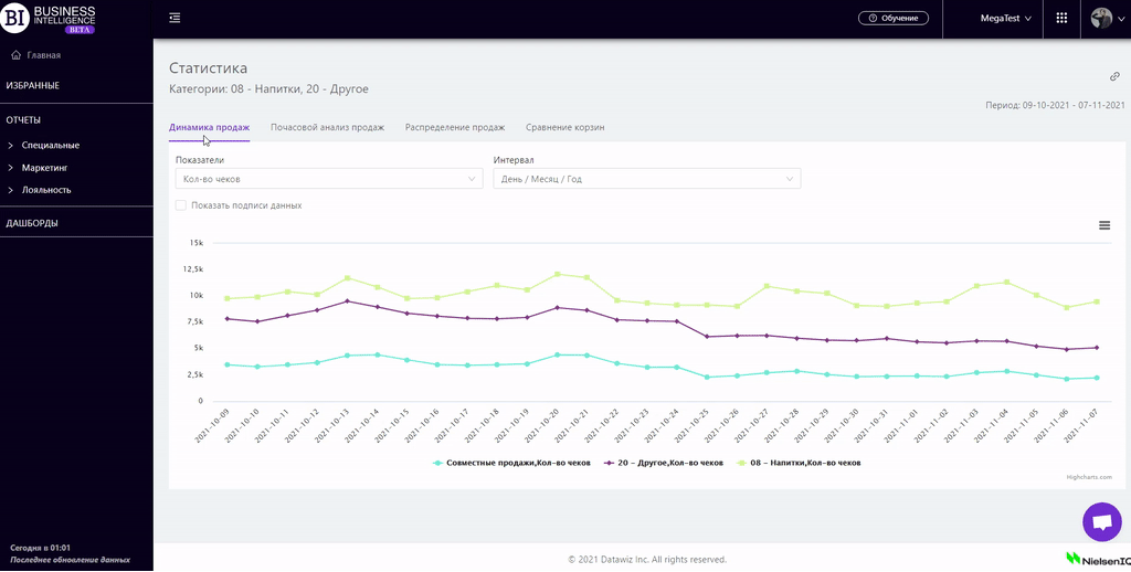 Продажи брендовКарточка магазинаКарточка товараАнализ корзинКвадрантный анализАнализ производителейЭффективность планограммУпущенные продажиИзменения продажКатегорийные менеджерыАнализ поставщиковСравнение маркеровКарточка категорииПродажи товаровПродажи магазиновПродажи категорийКонтроль остатковГлавнаяТовары на выводПрогноз OoSПочасовой анализДвижение товаровЭффективность кассировТовары для переучетаПроходимость кассПланы продажАнализ акцийВведенные SKUЭффективность программы лояльностиКарточка акцииRFM - анализСтатистика программы лояльностиСегменты клиентов программы лояльностиКарточка клиента ПЛСравнительная динамикаЧекиАНАЛИЗ КОРЗИН