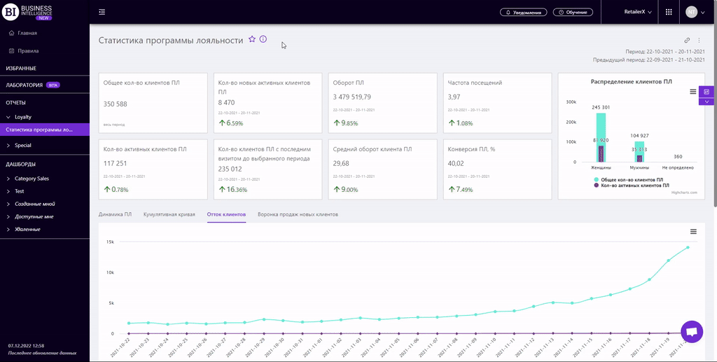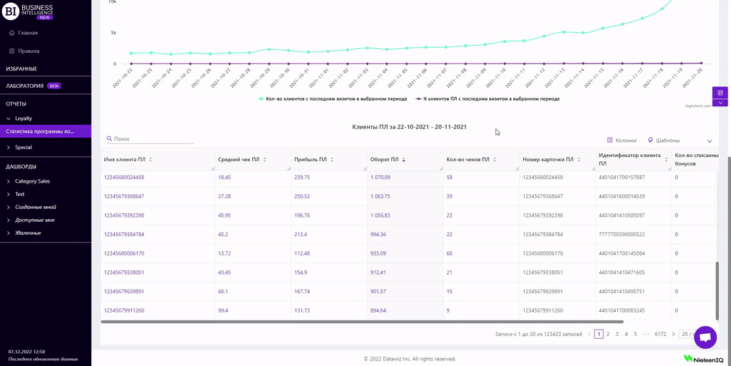 Продажи брендовКарточка магазинаКарточка товараАнализ корзинКвадрантный анализАнализ производителейЭффективность планограммУпущенные продажиИзменения продажКатегорийные менеджерыАнализ поставщиковСравнение маркеровКарточка категорииПродажи товаровПродажи магазиновПродажи категорийКонтроль остатковГлавнаяТовары на выводПрогноз OoSПочасовой анализДвижение товаровЭффективность кассировТовары для переучетаПроходимость кассПланы продажАнализ акцийВведенные SKUЭффективность программы лояльностиКарточка акцииRFM - анализСтатистика программы лояльностиСегменты клиентов программы лояльностиКарточка клиента ПЛСравнительная динамикаЧекиСТАТИСТИКА ПРОГРАММЫ ЛОЯЛЬНОСТИ