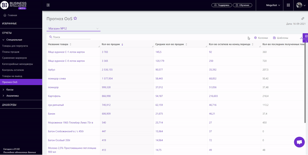 Продажи брендовКарточка магазинаКарточка товараАнализ корзинКвадрантный анализАнализ производителейЭффективность планограммУпущенные продажиИзменения продажКатегорийные менеджерыАнализ поставщиковСравнение маркеровКарточка категорииПродажи товаровПродажи магазиновПродажи категорийКонтроль остатковГлавнаяТовары на выводПрогноз OoSПочасовой анализДвижение товаровЭффективность кассировТовары для переучетаПроходимость кассПланы продажАнализ акцийВведенные SKUЭффективность программы лояльностиКарточка акцииRFM - анализСтатистика программы лояльностиСегменты клиентов программы лояльностиКарточка клиента ПЛСравнительная динамикаЧекиПРОГНОЗ OOS