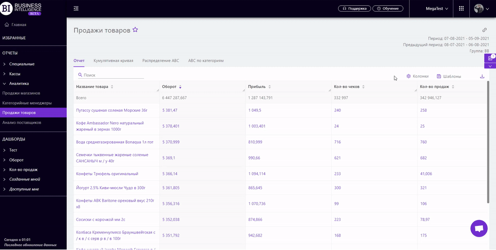 - оценивать вклад каждого товара в общие показатели продаж для дальнейшей оптимизации ассортимента;