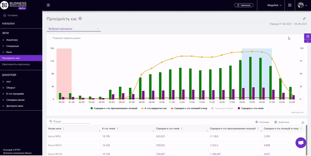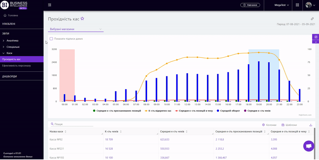 Продажі брендівКартка магазинуКартка товаруАналіз корзинКвадрантний аналізАналіз виробниківЕфективність планограмВтрачені продажіЗміни продажівКатегорійні менеджериАналіз постачальниківПорівняння маркерівКартка категоріїПродажі товарівПродажі магазинівПродажі категорійКонтроль залишківГоловнаТовари на виведенняПрогноз OoSПогодинний аналізРух товарівЕфективність касирівТовари для переоблікуПрохідність касПлани продажівАналіз акційВведені SKUЕфективність програми лояльностіКартка акціїRFM - аналізСтатистика програми лояльностіСегменти клієнтів ПЛКартка клієнта ПЛПорівняльна динамікаЧекиПРОХІДНІСТЬ КАС
